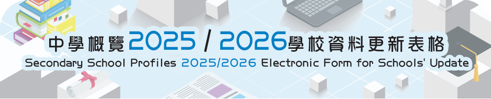 - 家庭與學校合作事宜委員會(家校會)已於2025年12月5日發布《中學概覽2025/2026》網上版(中、英文版本)。學校可以登入此網上表格,按需要更新學校資料。請注意,學校一旦於此網上表格更新並儲存資料,相關的資料與學校最新的PDF檔案會即時於《中學概覽2025/2026》網上版發布。